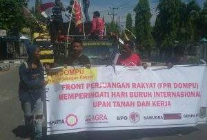 Tuntutan tersebut dilontarkan massa FPR dalam aksi unjuk rasa memperingati Hari Buruh Internasional di depan DPRD Dompu, Jalan Soekarno Hatta, Rabu (2/5/2018).
