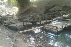 Menurut Joni, total karamba sepanjang sungai itu mencapai 40 sampai 50 buah. “Tiap karamba, kalau yang pelihara nila di dalamnya ya nila semua. Kalau lele, ya lele semua,” imbuhnya.