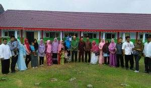 H. Suparman (tengah, memakai baju hijau dan kopiah) bersama keluarga besar SMKN 1 Pekat. (ist/lakeynews.com)