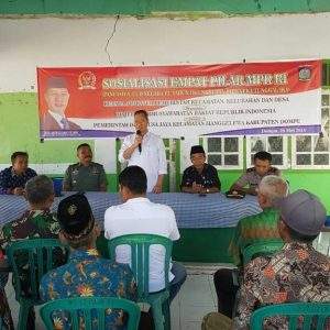 DOMPU, Lakeynews.com – Anggota DPR RI Dapil NTB dari Fraksi Partai Amanat Nasional (PAN) H. Muhammad Syafrudin, ST. MM, kembali melakukan sosialisasi Empat Pilar Kebangsaan di wilayah Kabupaten Dompu. Selasa (29/5/2018) dilakukan di Desa Nusa Jaya, Kecamatan Manggelewa. Tepatnya, di aula kantor desa setempat.