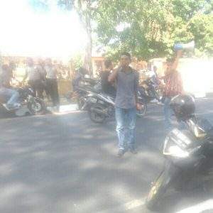 Penuturan senada yang disampaikan orator Rio Sulistio. “Jangan sampai kami cap camat itu sebagai biang kerok dalam persoalan ini,” teriak Rio dalam orasinya.