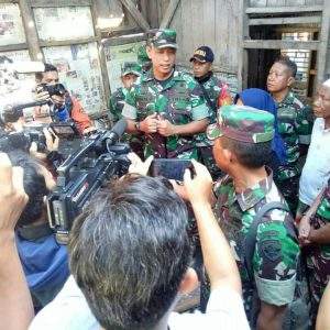 Danrem 162/WB Kolonel CZI Ahmad Rizal Ramdhani, S.Sos, SH, M.Han, memberikan keterangan pada sejumlah wartawan di depan rumah Zohri yang mulai direhab. (ist/lakeynews.com)