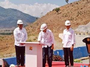 Peresmian bendungan yang memiliki genangan debit air sebanyak 18 juta meter kubik (M2) itu ditandai dengan pembunyian sirine dan penandatanganan prasasti oleh presiden.