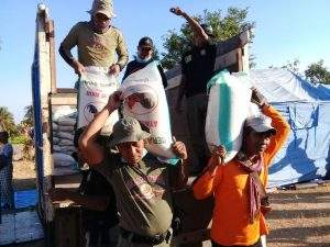 Sedangkan bantuan makanan dan lainnya dibawa oleh para personel tersebut, lanjut Simpe Dian (panggilan Ardiansyah, red), 2.200 dus mie instan, 2 ton beras (1 ton dibagi untuk dapur umum). Selain itu, ada tarpal, selimut dan pakaian layak pakai dan uang operasional Rp. 67 juta.