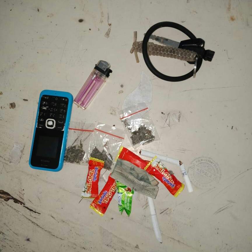 Selain tiga poket ganja, polisi juga mengamankan satu klip kosong, satu buah korek gas, satu buah HP Nokia dan satu unit motor Vixion merah.