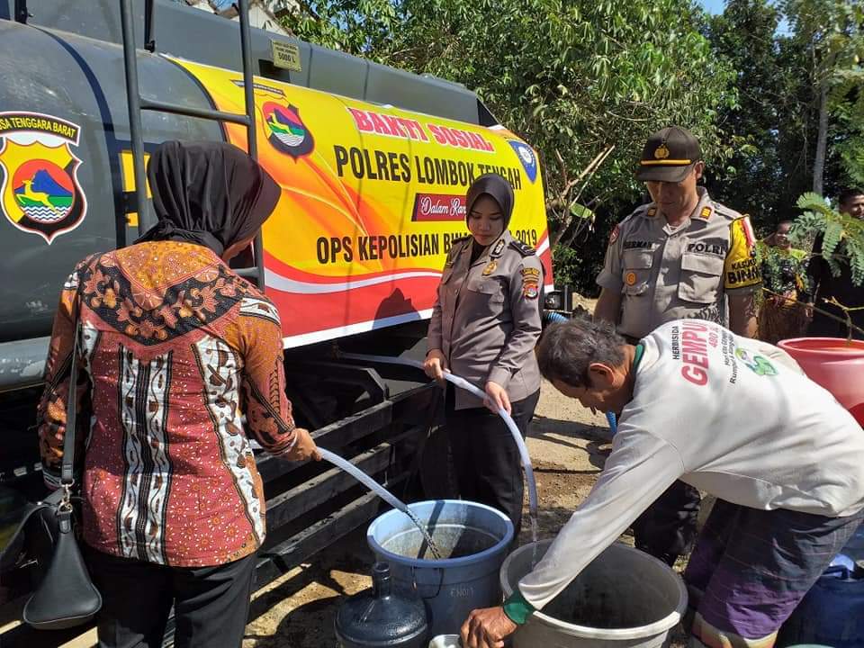 Kegiatan pembagian air bersih tersebut merupakan bagian dari bakti sosial (Baksos) dalam rangka HUT Bhayangkara ke 73 Polres Loteng.