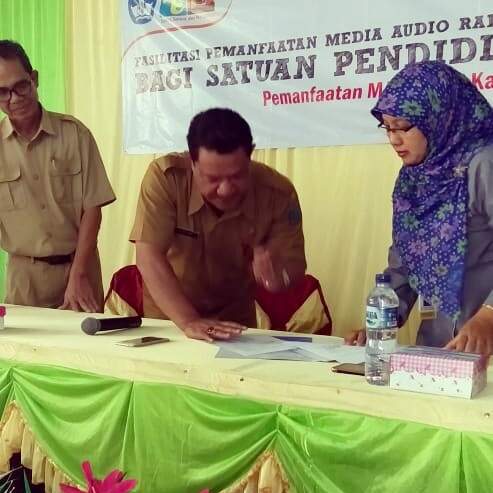 Sesuai rencana, selesai acara pembukaan dilangsungkan Penandatanganan MoU Penyaluran Bantuan Media Audio Pendidikan oleh Kadis Dikpora dan pihak BPMRPK. (zar)