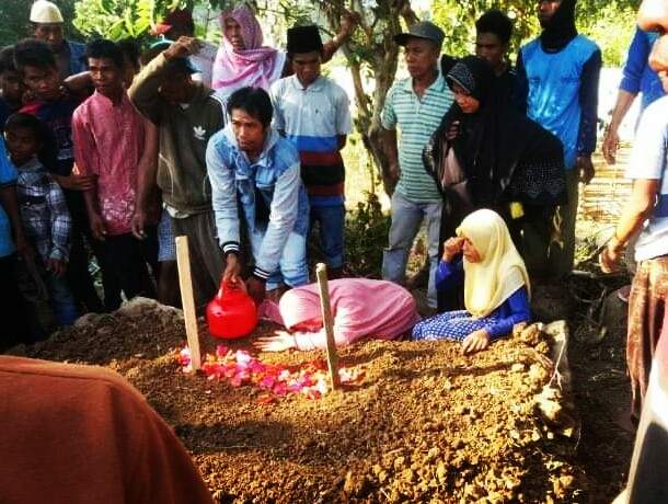 Jenazah almarhum Sukri, ketika dimasukkan ke liang lahat di Pemakaman Umum Desa Mpili. (ist/lakeynews.com)