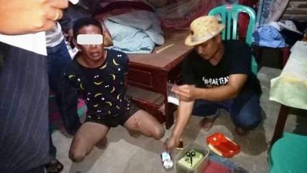 Ketika digerebeg polisi, HI dan istrinya, AT, sedang menimbang (menakar) barang yang diduga SS. Saat pintu rumah pelaku didobrak anggota, HI sempat kabur lewat pintu belakang. Setelah dikejar anggota, HI akhirnya tertangkap.