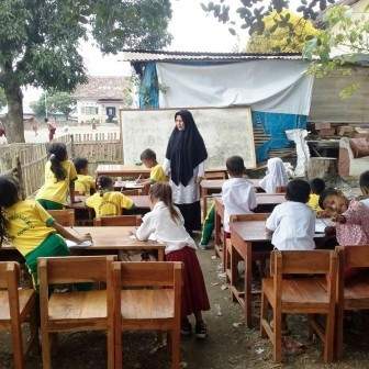 Awal-awal masuk TP 2019/2020, anak-anak kelas 1 dan 2 belajar di halaman. Agar anak-anak tetap semangat dan enjoy belajar, diberilah istilah bahwa KBM tersebut adalah “pendidikan berbasis lingkungan”. Tak lama kemudian, pihak sekolah membuatkan, sehingga peserta didik lebih nyaman belajar.