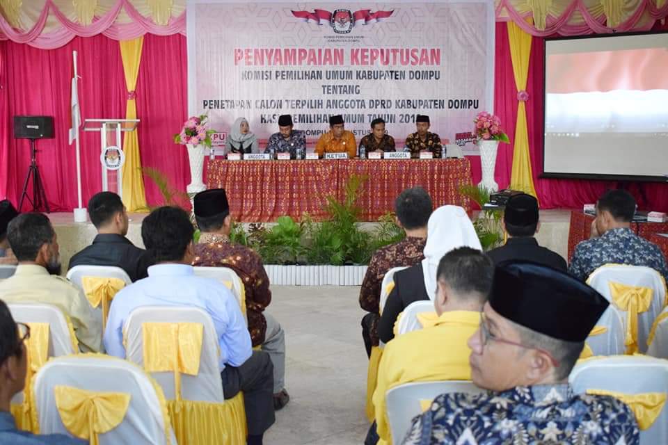 DOMPU, Lakeynews.com – KPU Kabupaten Dompu menyampaikan (menyerahkan) Surat Keputusan Penetapan Calon Terpilih Anggota DPRD Kabupaten Dompu Hasil Pemilihan Umum Tahun 2019 kepada pimpinan parpol dan calon terpilih. Kegiatan itu berlangsung di Aula KPU Dompu, Senin (12/8).