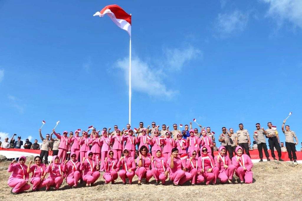 MATARAM, Lakeynews.com – Momentum peringatan Hari Ulang Tahun ke-74 Kemerdekaan Republik Indonesia diisi jajaran Polda NTB dengan mengibarkan bendera merah putih di bukit Merese Kuta Mandalika, Kabupaten Lombok Tengah.