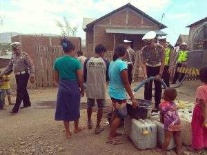 Kegiatan yang dipimpin Kasat Lantas IPTU Wayan Sukarsana, SH kali ini menyalurkan bantuan air bersih di tiga dusun. Yakni Dusun Wodi dan Dusun Worobaka, Desa Bakajaya, serta Dusun Buncu Utara, Desa Matua. Sama-sama berada di Kecamatan Woja.