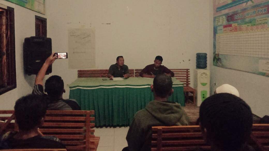 Hadir dalam pertemuan itu, Kaur Kesra Abdul Muis mewakili Kepala Desa O’o Wawan Wiranto, Ketua BPD Jonifrianto beserta anggota, beberapa aparat desa, tokoh masyarakat, agama dan pemuda.