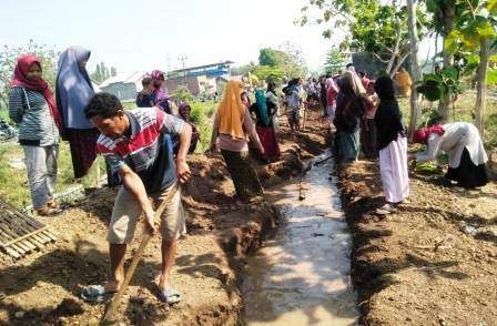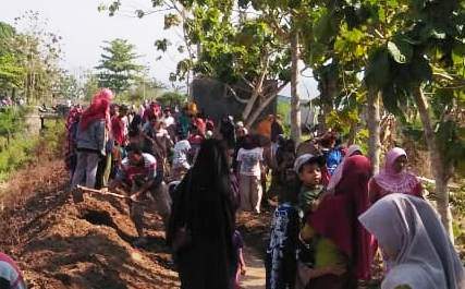 Ibu-ibu Ikut Menimbun Galian Saluran Pipa