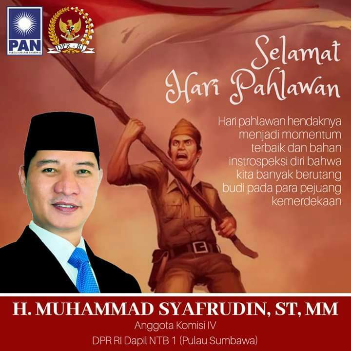 Anggota DPR RI, H. Muhammad Syafrudin, ST, MM, mengingatkan anak bangsa untuk sama-sama mengenang jasa para pahlawan. “Mari kita kenang jasa para pahlawan dengan hal-hal yang positif,” ajaknya pada Lakeynews.com via ponselnya, Minggu (10/11).
