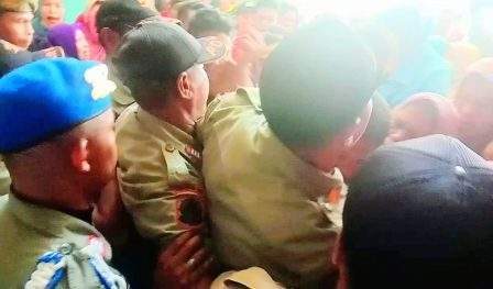 Kondisi inipun, membuat massa yang didominasi ibu-ibu rumah tangga ini, emosi dan memaksa masuk untuk bertemu Bupati Dompu. Massa nyaris bentrok dengan aparat Pol PP. Mereka sempat saling dorong Pol PP yang berjaga di kantor Bupati.