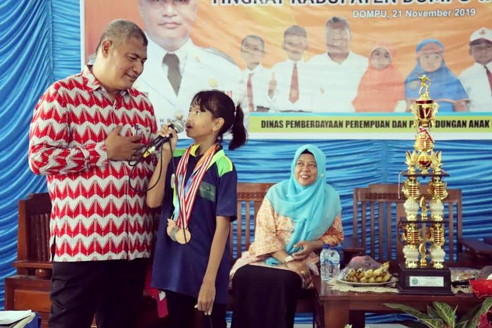 Sebagai bentuk apresiasinya pada atlet tersebut, Kepala Dinas Pemberdayaan Perempuan dan Perlindungan Anak (DP3A) Kabupaten Dompu Hj. Daryati Kustilawati memberikan hadiah uang tunai Rp. 5 juta dan Rudi Purtomo, Kasi Sosbud sekaligus Direktur ForPaS Dompu menghadiahi Rp. 1 juta. (ady)