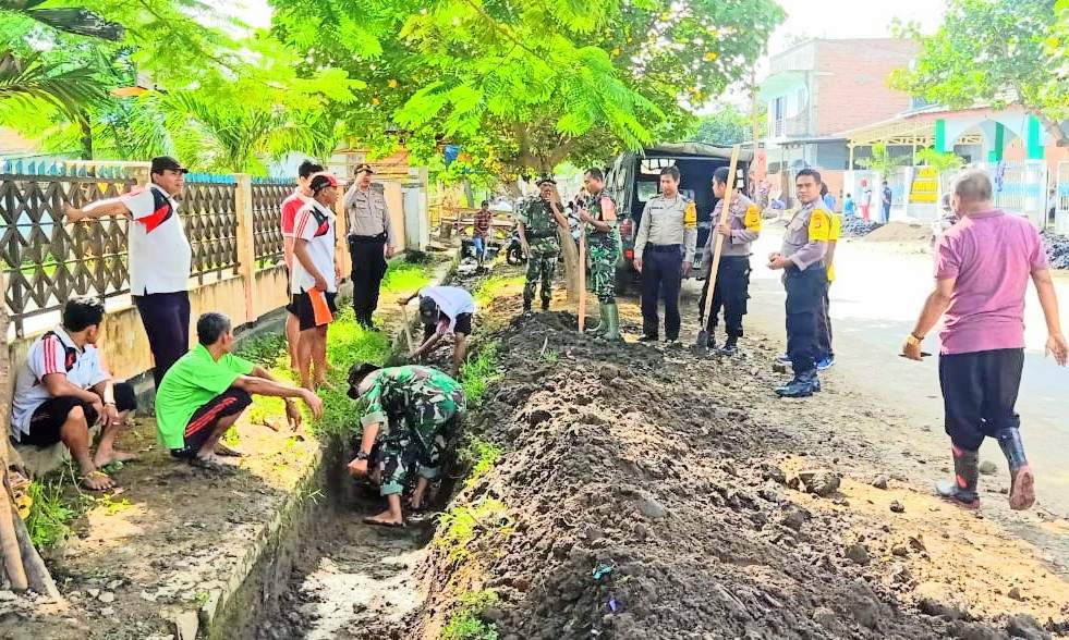 DOMPU, Lakeynews.com – Jajaran Koramil 1614- 01/Dompu, Polsek Kota Dompu dan Pemerintah Kecamatan Dompu, melakukan kegiatan gotong royong membersihkan saluran Drainase di Desa Kareke, Kecamatan Dompu yang tersumbat karena tumpukan sampah dan lumpur, Rabu (8/1).