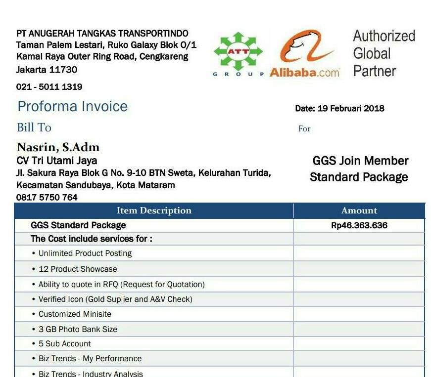 Alibaba.com menawarkan kemitraan dengan pihak Tri Utami Jaya dalam mempromosikan dan memasarkan produk-produknya. Yakni dengan membuka toko di olshop Alibaba.com.