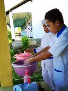 Seperti yang dilakukan warga SMK Kesehatan YAPIK Gerbang Dompu, Senin (16/3) pagi.