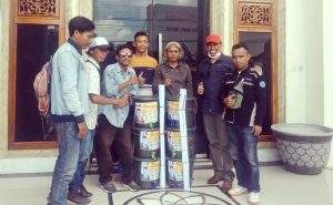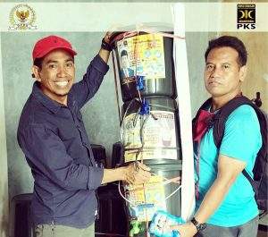 Politisi PKS itu membagi-bagikan ember yang sudah dipasang keran air, deterjen (sabun cuci) dan spanduk kepada berbagai elemen masyarakat di Bumi Nggahi Rawi Pahu.