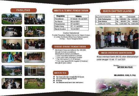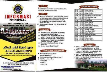 DOMPU, Lakeynews.com – Menyambut tahun ajaran 2021/2022, Pondok Pesantren (Ponpes) As-Salam Dompu, membuka pendaftaran dan penerimaan calon santri.