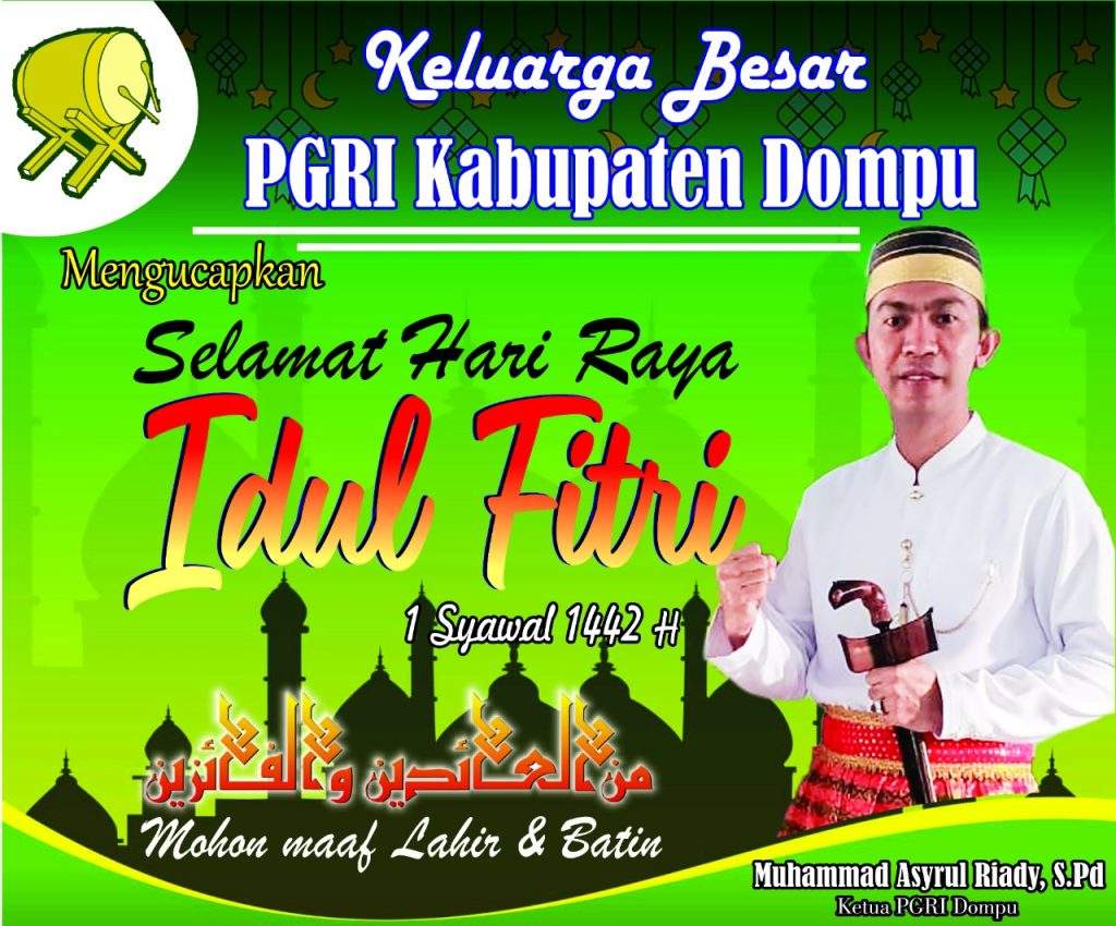 Keluarga Besar Persatuan Guru Republik Indonesia (PGRI) Kabupaten Dompu Mengucapkan; “Selamat Hari Raya Idul Fitri, 1 Syawal 1442 Hijriah. Minal Aidin Wafaizin, Mohon Maaf Lahir dan Batin.”