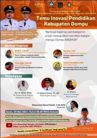 Kegiatan dengan tema “Berbagi Inspirasi Pembelajaran untuk Mewujudkan Merdeka Belajar Menuju Dompu Mashur” itu digelar dalam rangka Hari Pendidikan Nasional (Hardiknas) Tahun 2021 itu.