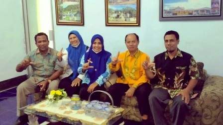 Setelah bersilaturahmi dengan Kadis Dikpora, agenda pertemuan yang difasilitasi Simpe Dian berlanjut dengan Bupati. Seperti tertulis di atas, Bupati masih di luar daerah karena pesawat yang akan ditumpangi mengalami delay (penundaan penerbangan). Akhirnya, beberapa pengurus IGI itu terima Sekda Gatot di ruang kerjanya.