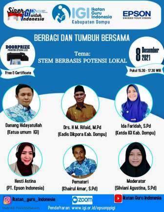 Dompu merupakan salah satu daerah yang mengikuti webinar nasional 34 provinsi tersebut. Kegiatan mengusung tema “Berbagi dan Tumbuh Bersama IGI-EPSON”, dengan materi “STEM Berbasis Potensi Lokal”