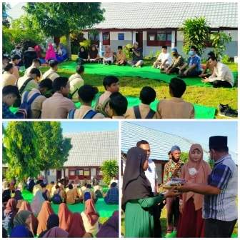 Kegiatan yang berlangsung di lapangan sekolah tersebut, berjalan lancar dan khidmat. Acara dilakukan secara sederhana. Duduk bersila di atas lembaran terpal yang digelar.