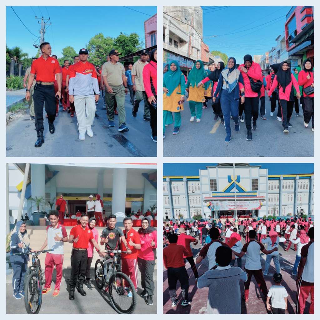 Olahraga bersama diawali dengan jalan santai keliling Kota Dompu. Dilanjutkan senam zumba. Kemudian pengundian kupon berhadiah kepada seluruh peserta.