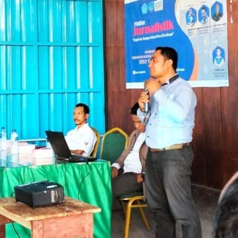 Dari internal, Ilyas Yasin (Jurnalis, Dosen dan Kabag Humas STKIP YAPIS Dompu) yang menyampaikan materi tentang “Teknik Penulisan Berita”.