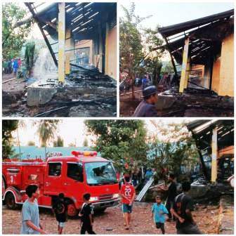 Saat api mulai menjilat lokal bangunan lain, termasuk kamar kecil (WC), mobil pemadam kebakaran tiba di lokasi dan melakukan pemadaman.
