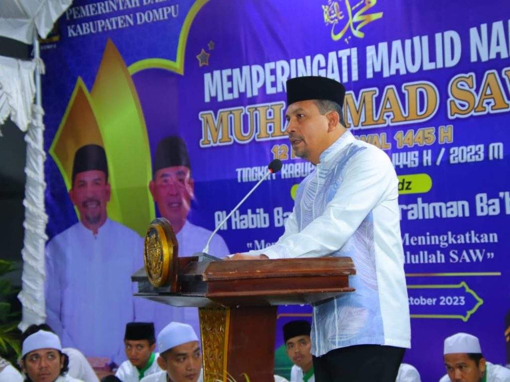 Hal tersebut dilontarkan AKJ ketika menyampaikan sambutan pada Peringatan Maulid Nabi Muhammad SAW 1445 Hijriah/2023 Masehi di Lapangan Beringin Kantor Bupati Dompu, Kamis (5/10/23) malam ini.