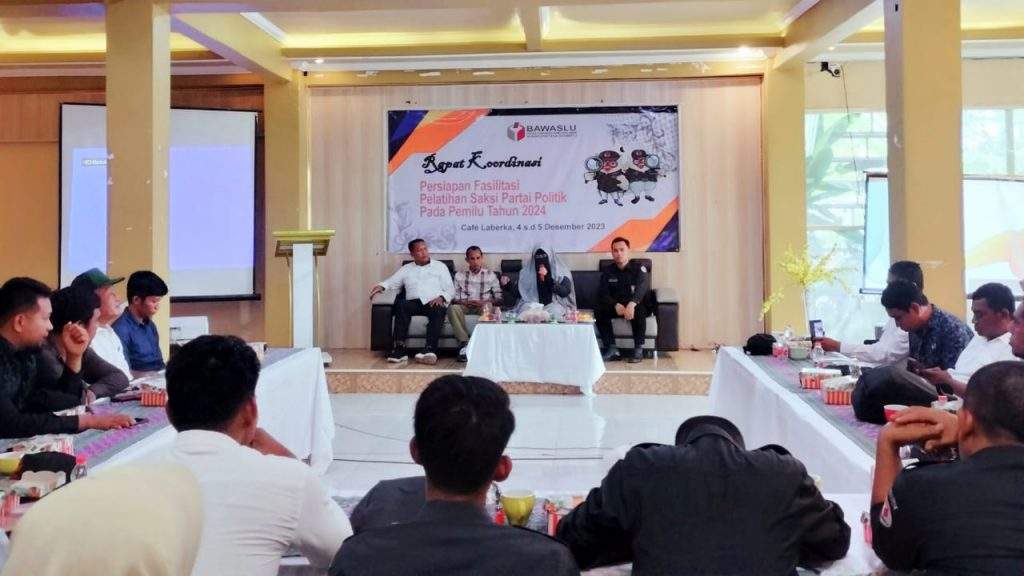 DOMPU – Badan Pengawas Pemilu (Bawaslu) Kabupaten Dompu melaksanakan Rapat Koordinasi (Rakor) Persiapan Fasilitasi Pelatihan Saksi Partai Politik (Parpol).