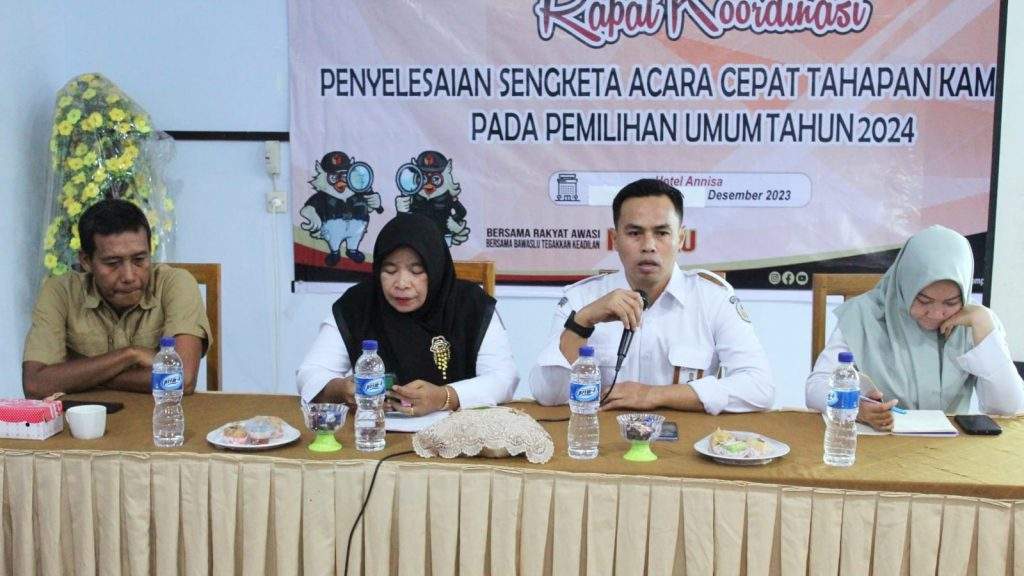 DOMPU – Bawaslu Kabupaten Dompu menyelenggarakan Rapat Koordinasi (Rakor) Penyelesaian Sengketa Acara Cepat Tahapan Kampanye pada Pemilu 2024.
