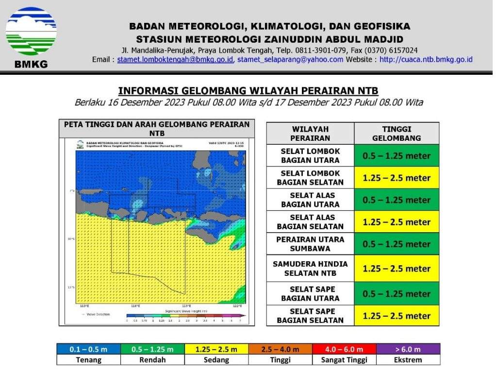 MATARAM – Badan Meteorologi, Klimatologi dan Geofisika (BMKG) Stasiun Zainuddin Abdul Madjid (ZAM) kembali mengeluarkan Peringatan Dini terkait tinggi gelombang.
