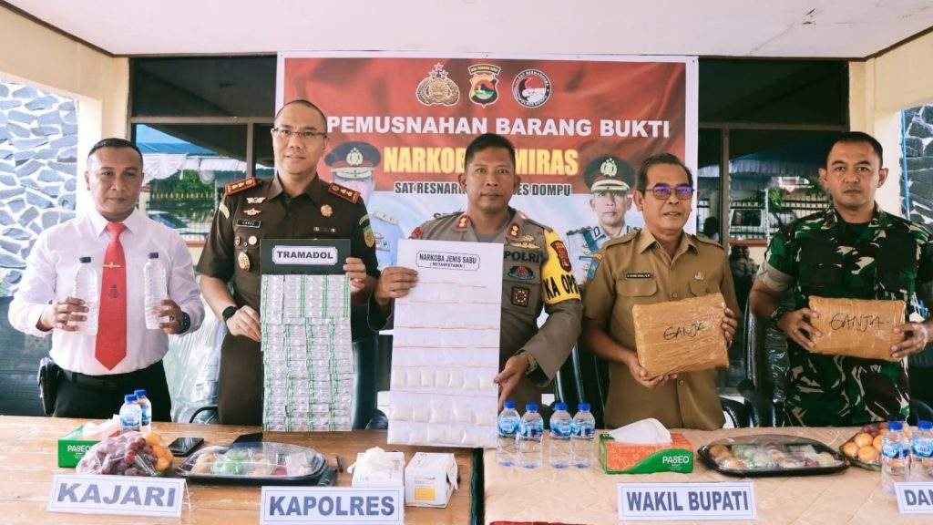 DOMPU – Ribuan gram Narkoba barang bukti (BB) sejumlah kasus yang berhasil diungkap Satuan Resnarkoba Polres Dompu sepanjang tahun 2023, dimusnahkan. Dimusnahkan juga BB Obat-obatan dan minuman keras (Miras)
