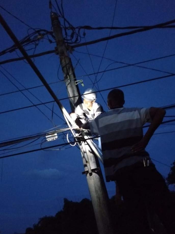 Dia kemudian menginformasikan aktivitas para petugas yang pada malam itu tengah bekerja, menangani lampu jalan yang mati di beberapa titik.