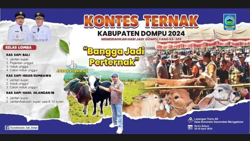 DOMPU – Dinas Peternakan dan Kesehatan Hewan (Disnakeswan) Kabupaten Dompu, kembali menyelenggarakan Kontes Ternak Se-Pulau Sumbawa.