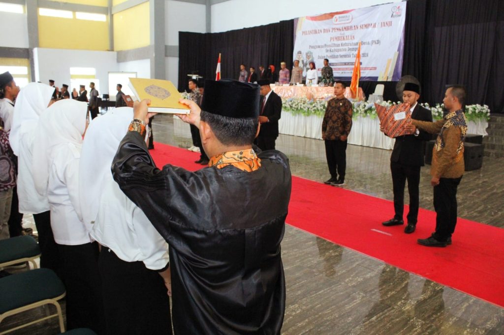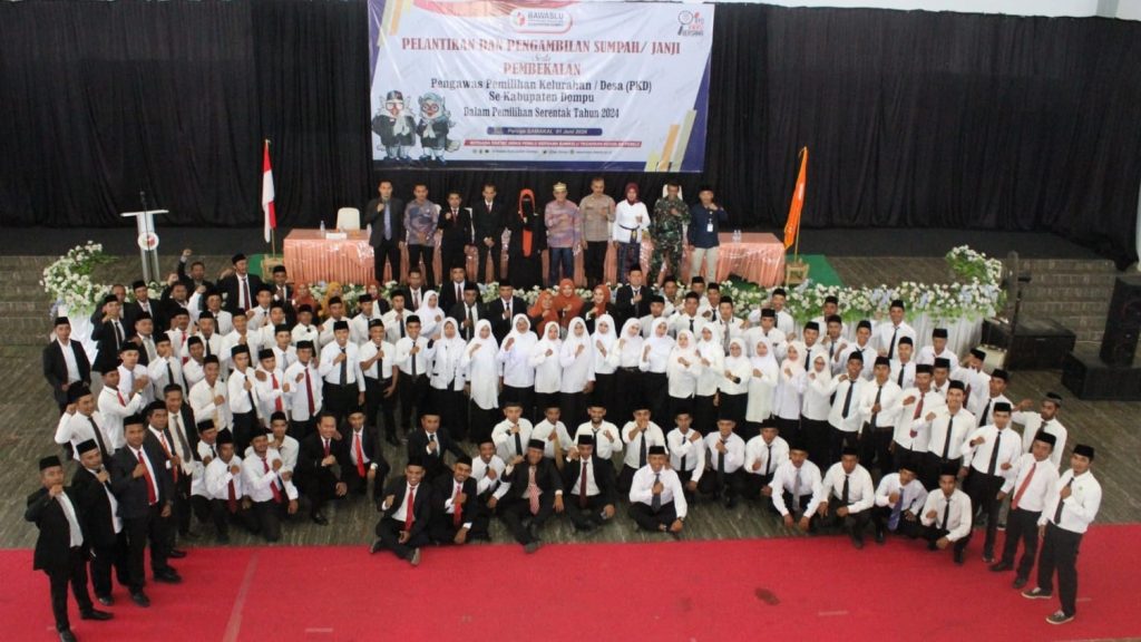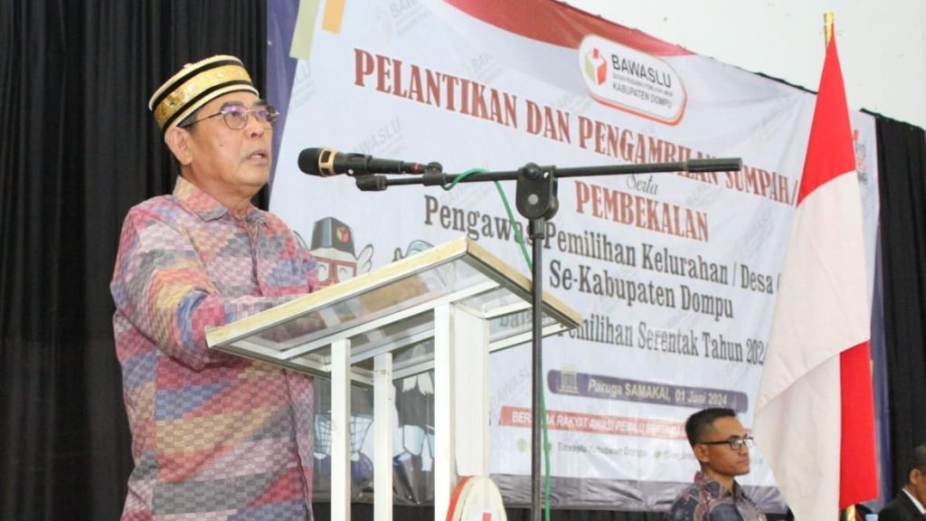 DOMPU – Pelantikan dan Pengambilan Sumpah/Janji serta Pembekalan 81 Pengawas Pemilihan Kelurahan/Desa (PKD) Se-Kabupaten Dompu dalam Pemilihan Serentak Tahun 2024 bertepatan dengan peringatan Hari Lahir Pancasila, 1 Juni 2024.