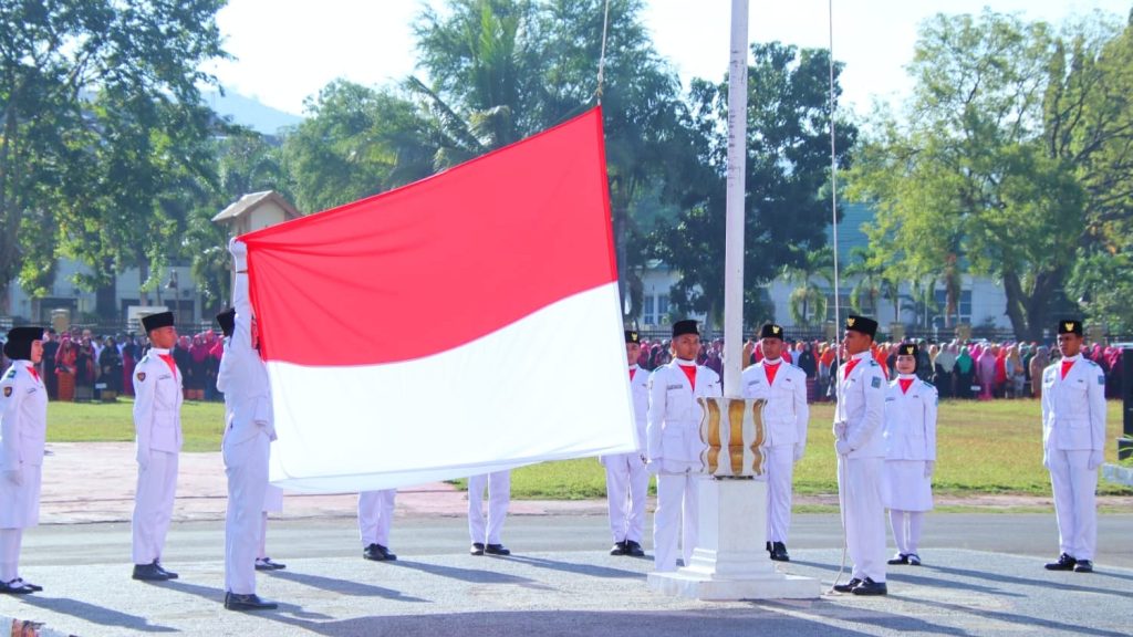 Upacara bendera memperingati tiga hari besar nasional tersebut diinspekturi Bupati H. Kader Jaelani dan Pembacaan UUD 1945 oleh Ketua DPRD H. Andi Bachtiar Jufri.