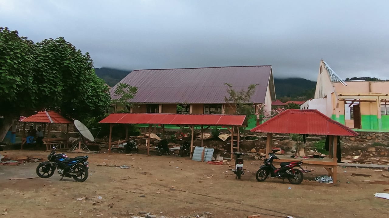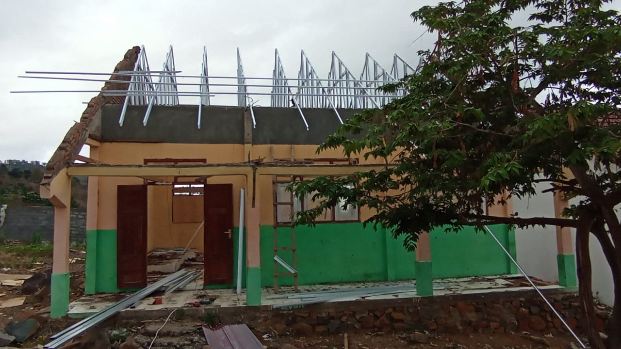 “Untuk sementara, kita pakai (tutupi) dulu dengan seng bekas, hasil pembongkaran bangunan yang direhab,” jelas Subari.