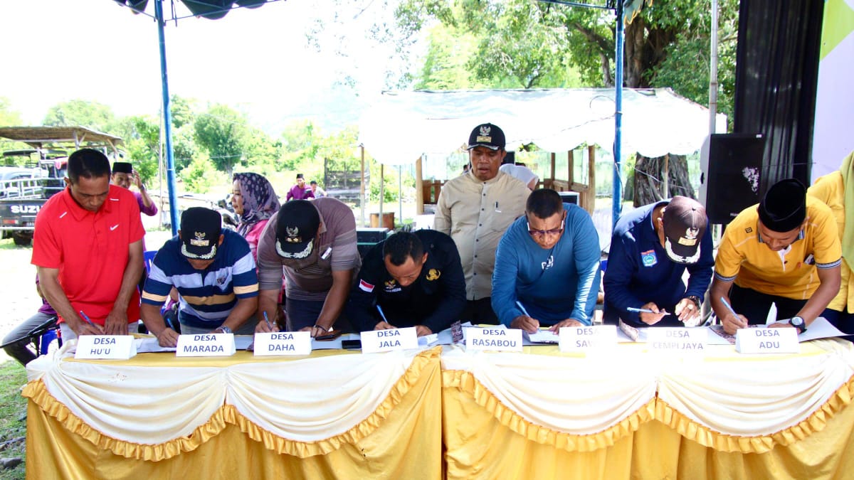 Juga hadir staf ahli Bupati, Asisten Setda, beberapa pimpinan organisasi perangkat daerah, para Kades se-Kecamatan Hu’u, sejumlah staf PT STM, serta warga sekitar.