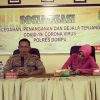 AKBP Syarif Hidayat didampingi Ny. Susi Syarif, memberikan arahan pada peserta Sosialisasi Pencegahan, Penanganan dan Gejala Terjangkit Covid-19 di Mapolres Dompu. (ist/lakeynews.com) Kapolres...