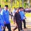 Bupati Dompu Drs. H. Bambang M. Yasin (HBY), Wakil Bupati Arifudin, SH, Ketua DPRD Andi Bachtiar, dan sejumlah pejabat lain di arena lapangan upacara. (ist/lakeynews.com) Bupati Apresiasi Kinerja...