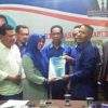 Hj. Eri Aryani didampingi H. Ichtiar Yusuf sedang menyerahkan berkas dan formulir pencalonannya kepada Ketua Tim Penjaringan Bacabup/Wabup NasDem Aminuddin, S.Hut. (ady/lakeynews.com) DOMPU, Lakeynews.com...
