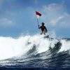 Tepat di atas gulungan ombak yang ganas, salah satu anak Pantai Lakey sukses mengibarkan bendera merah putih dalam posisi tegak. (ist/lakeynews.com) DOMPU, Lakeynews.com – Pengibaran bendera...